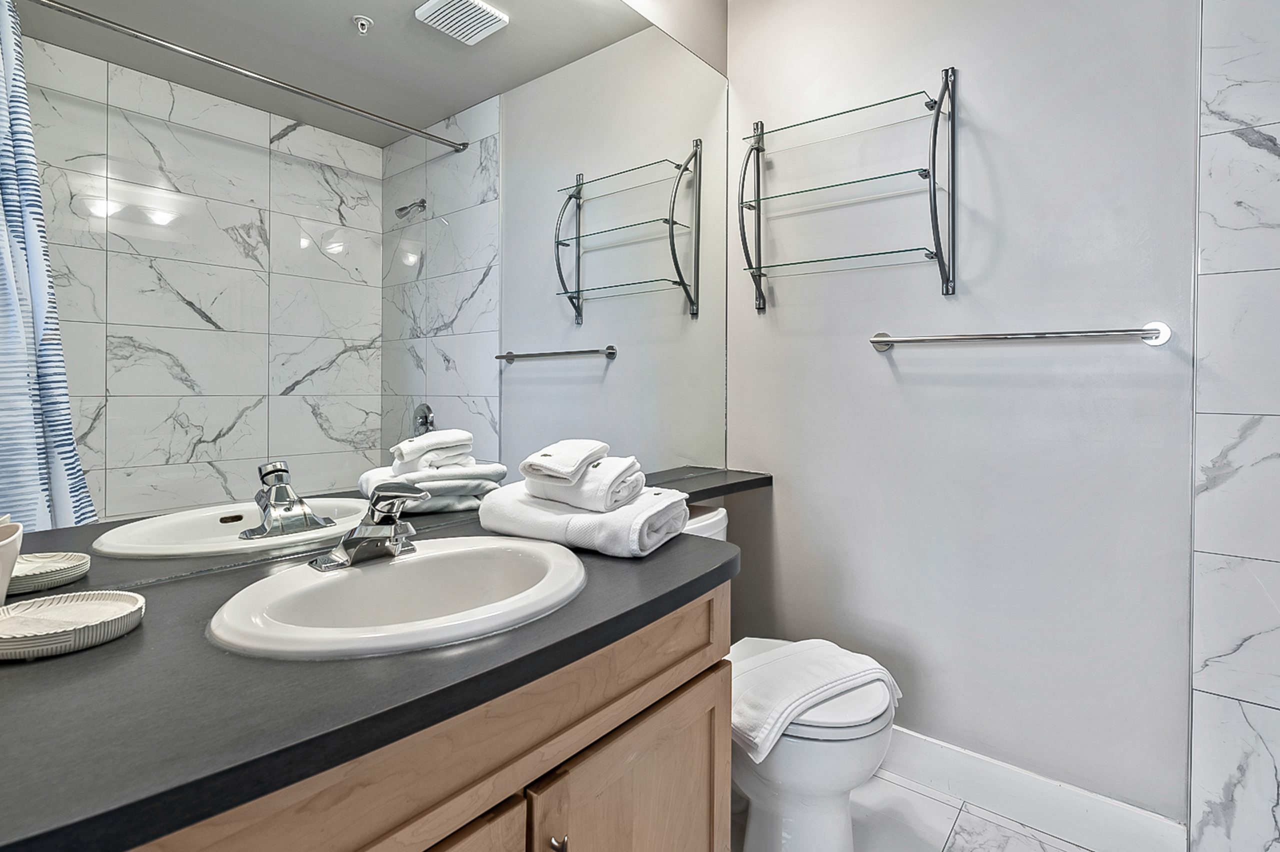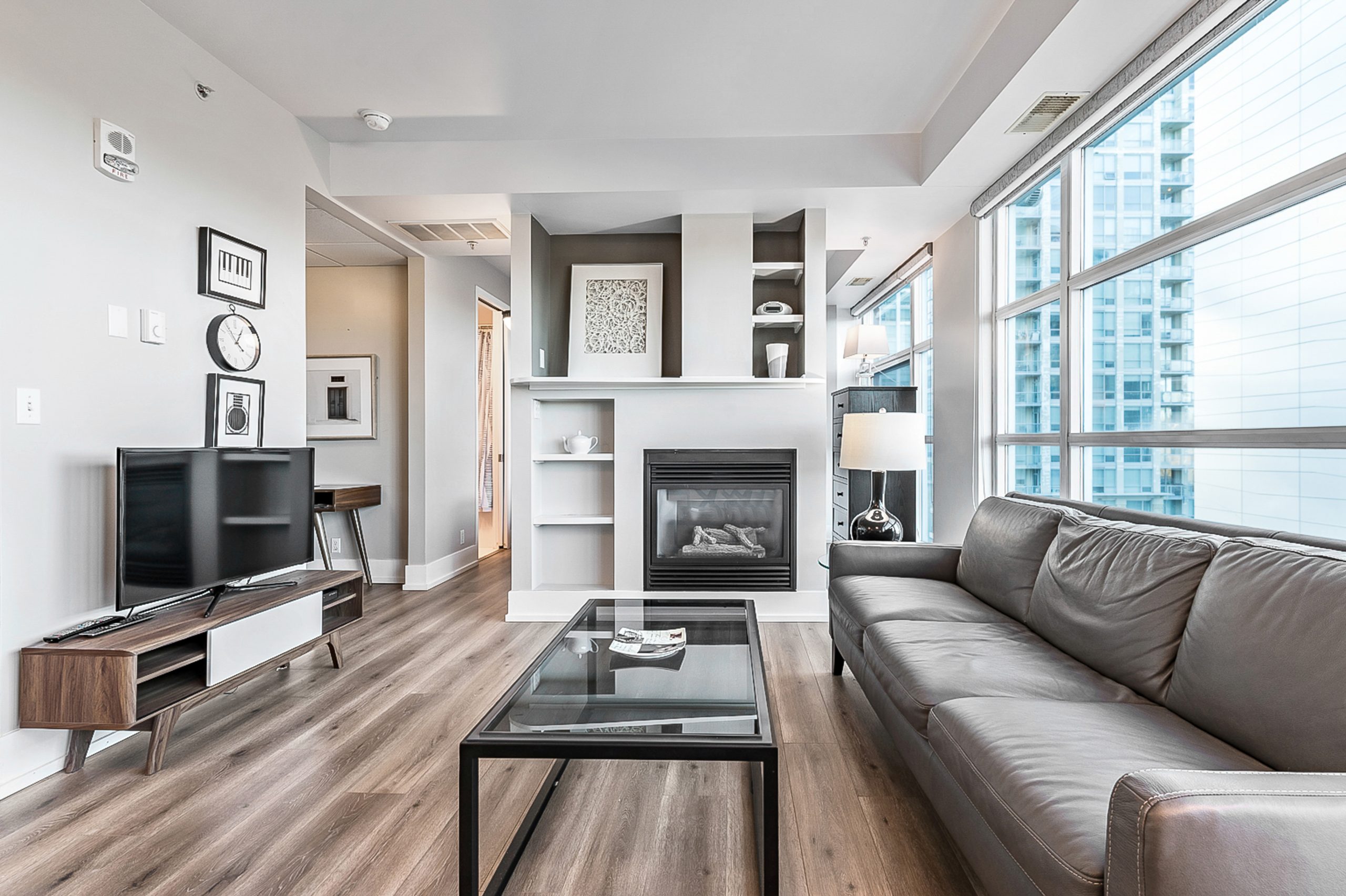This one bedroom suite has been fully renovated and features floor to ceiling windows, hardwood flooring, and a warm gas fireplace that creates a comfortable and inviting living space. The modern kitchen offers stainless steel appliances, quality housewares, and all small appliances for convenient extended stays.