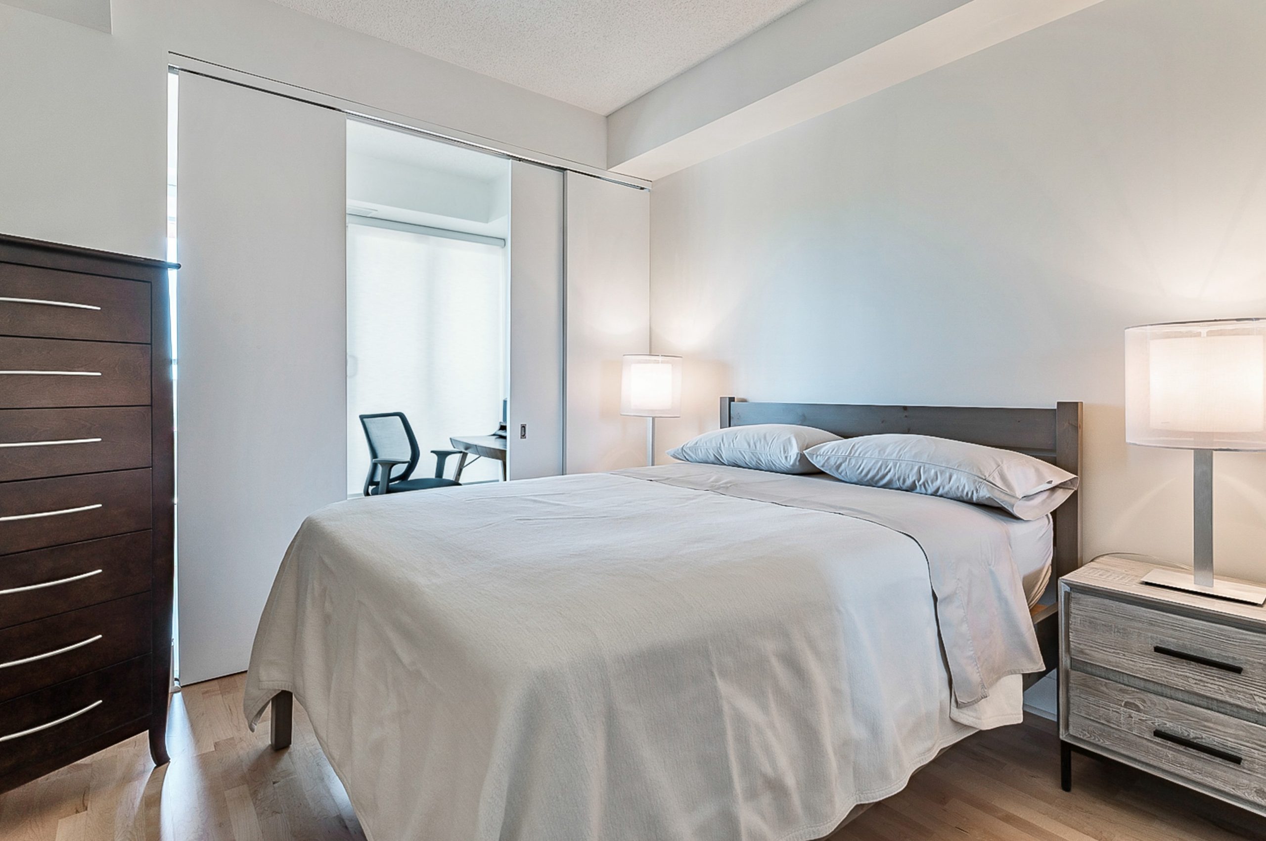 This city-view executive suite offers a 30’ balcony; fully equipped with patio furniture. Enjoy the fully stocked kitchen. Add to that high ceilings and big windows and black out draperies in the master bedroom.